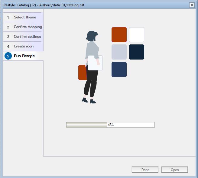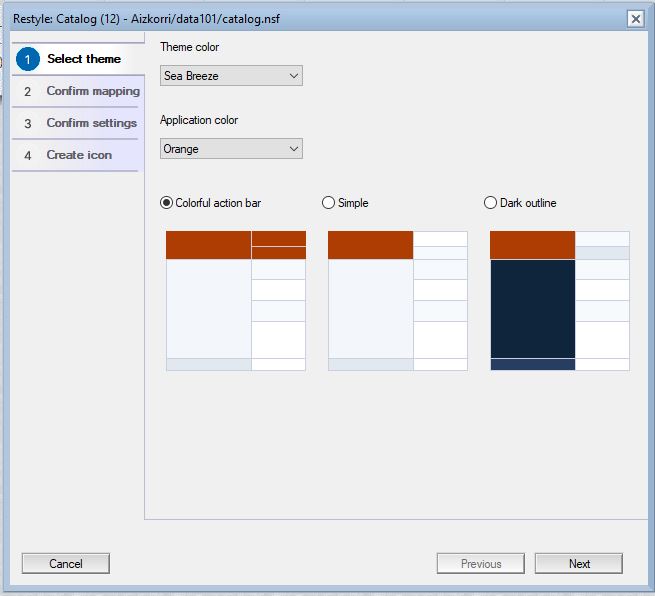 Permite de manera simple y automática modificar los colores y el estilo de una aplicación Notes, adaptándolos a formatos con apariencia más moderna mediante el uso de un asistente que nos guiará paso a paso a definir un nuevo estilo visual..