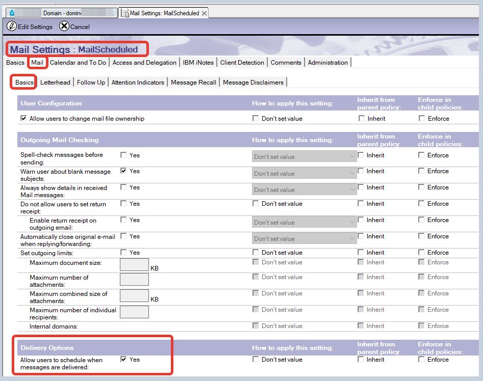 Desde la versión 10 de HCL Domino, se puede enviar correos programando hora y fecha de envío.