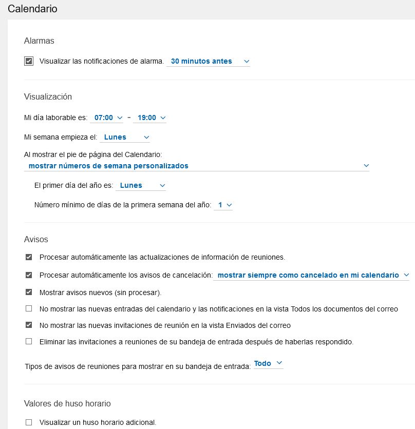 • Nuevos parámetros para organizar su calendario (horarios de oficina, filtro de reuniones a enseñar en el calendario, visión de avisos no leídos de reuniones).