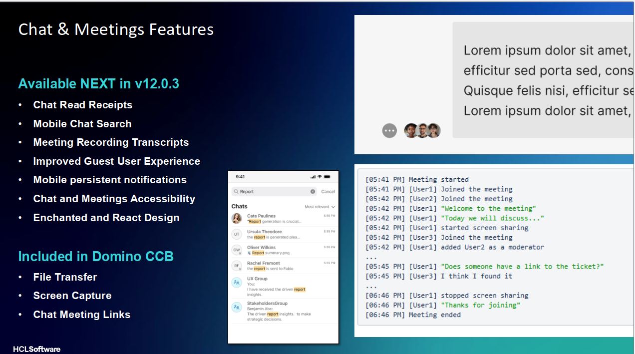 HCL, for their part, announced the new features for the next version of Sametime.