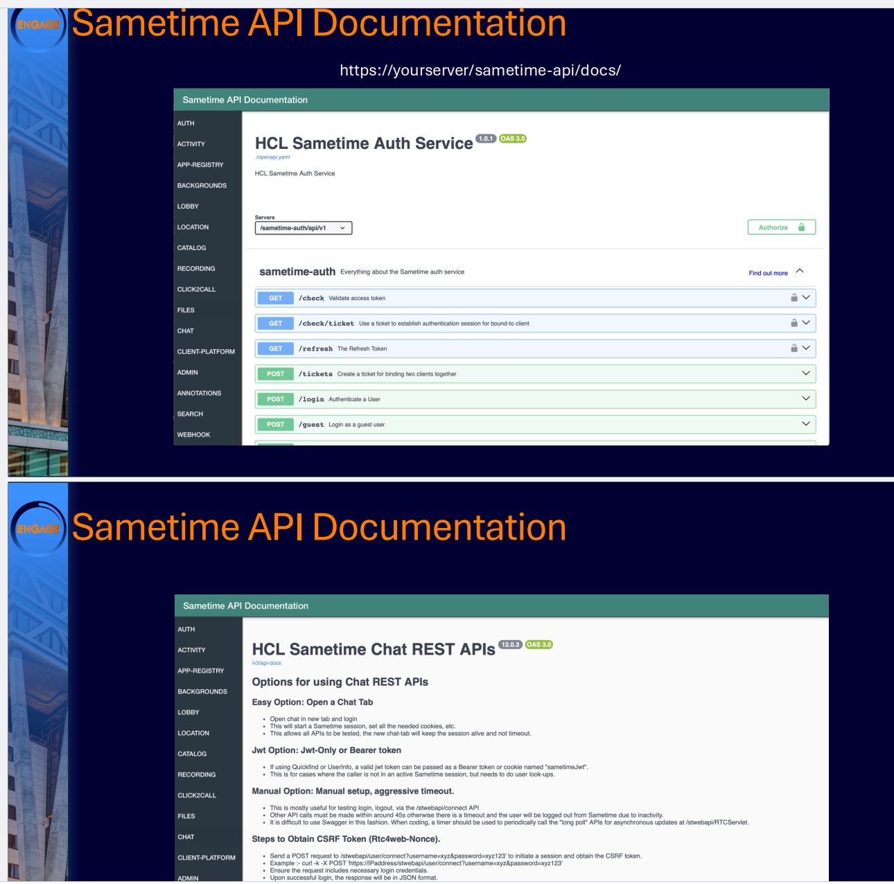 HCL Sametime has a full set of endpoints in its API, ready to be integrated.