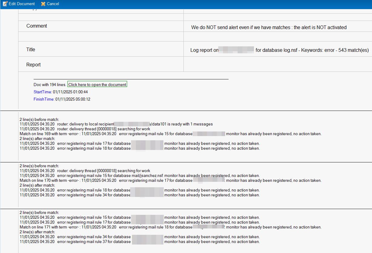 This application allows you to generate reports based on matches of a list of keywords contained in documents. The initial goal was to search in log.nsf, but the scope has since been broadened.