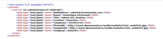 En el servidor Sametime Community, en la carpeta \Domino\, editar el dichero: UserInfoConfig.xml
